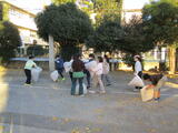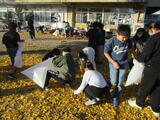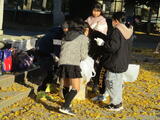 校庭東側の大イチョウの葉が散って、黄色いじゅうたんのようになっていましたが、4年生が協力して「落ち葉掃き」を行い、きれいにしました。