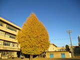 校庭の西側のイチョウの木はほとんど落葉し、東側のイチョウは紅葉し、落葉し始めました🍂
