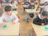 この日は、磁石の極はどちらを指すのかについて予想を立て、実験しました。