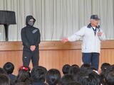 佐野警察署よりスクールサポーター及び生活安全課職員、佐野駅前交番所長、佐野市役所危機管理課防犯係職員の皆さんにおいでいただき、不審者に出くわしたときの対応について、様々な場面を想定してご指導いただきました。