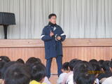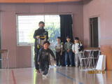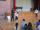 その後、防犯教室が行われ、不審者にランドセルや手をつかまれたときにどうしたらよいか、実技を交えて教えていただきました。