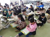 拡大絵本を使用しての読み聞かせもあり、いつものように児童たちの目は生き生きと輝いていました。