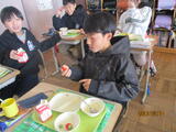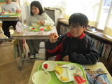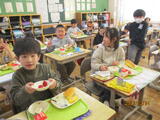 グループになって給食を食べるのは初めてという児童たちが多く、いつも以上に楽しい給食タイムになりました。