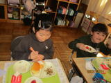 各クラスでは、給食の標語を作ったり、月・火・水は、グループ給食をしました。