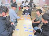 次に、あいさつの活性化に向けた取組について、劇とゲームのグループに分かれて話し合いました。