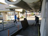 外では、強風の中、体育館通路や外側の窓拭き、マットの洗浄などに取り組んでいただきました。
