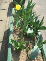黄色と赤のチューリップが咲き始めていました。