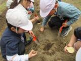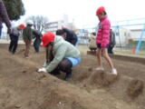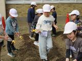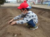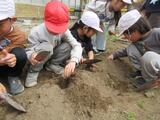 生活科で様々な体験や栽培活動を行ってきた1年生は、今回もみんなで楽しく、上手に種イモを植えることができました。