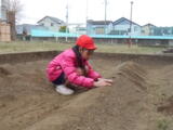 用務員さんが、畑をきれいに耕して畝を作ってくださいました。