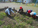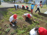 美味しい大根を収穫するため、みんなで草取りを頑張りました!