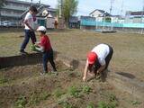 たんぽぽ・ひまわり学級では、自立活動の授業で農園での作業を行いました。3月に種を蒔いた大根が芽を出しましたが、まわりには雑草がたくさん生えてしまいました。