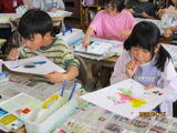 音読を聞いた後に、物語の文章を4つの段落に分ける活動を行いました。