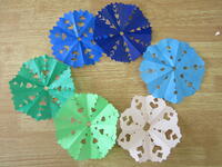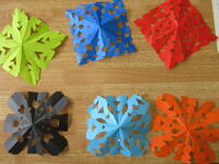 折った色紙を切って開いてできる形を楽しみます。