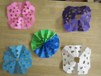 折り方や切り方、色の組み合わせを工夫しながら、どの児童もすてきな形ができました。