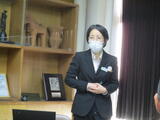 発表の間に熱心にメモをとり、感想を伝えながら賞状を渡しました。