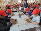 職員の方のお話を聞いて、みんなそれぞれお皿やコップなどを作っています。