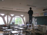 保護者、児童、地域の方、教職員が参加し、普段の清掃ではできない、側溝の掃除や窓拭き、蛍光灯の上のゴミ落としや傘立てなどの掃除などを行いました。