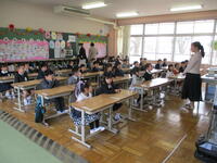 着任式では、児童たちと着任者が互いに「よろしくお願いします。」とあいさつをしました。