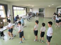 雨上がりで校庭の状態があまりよくないので業間は室内運動です。